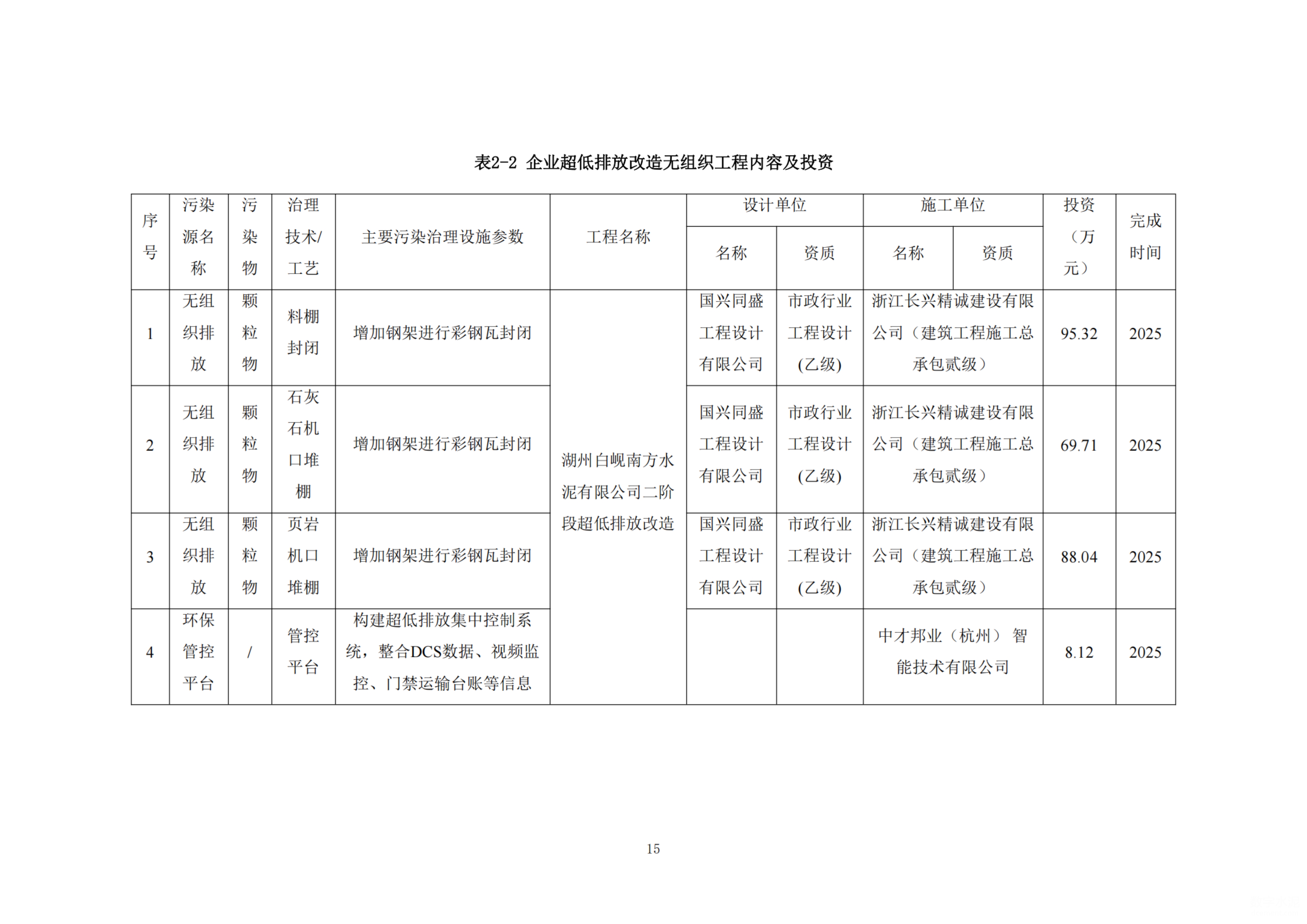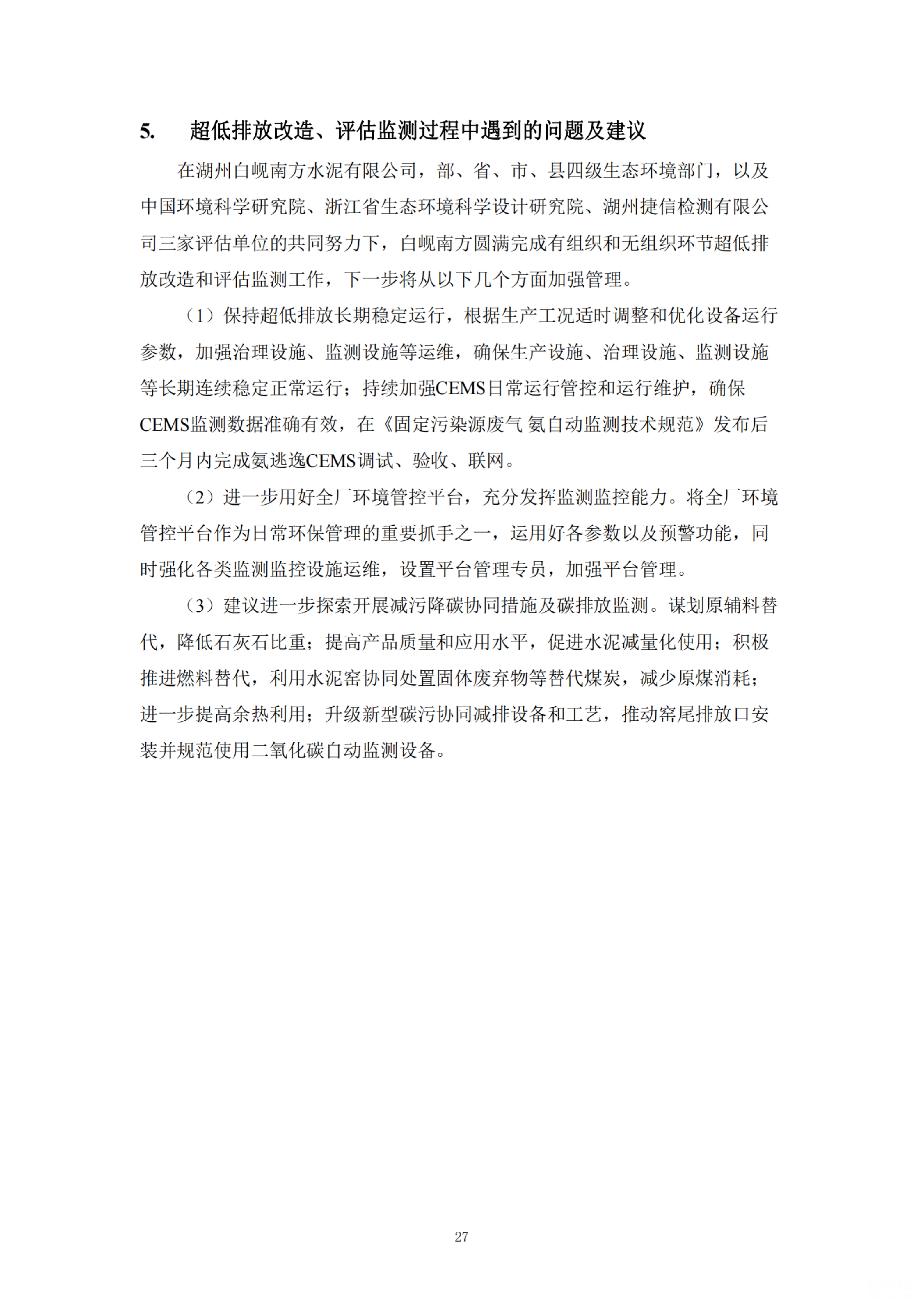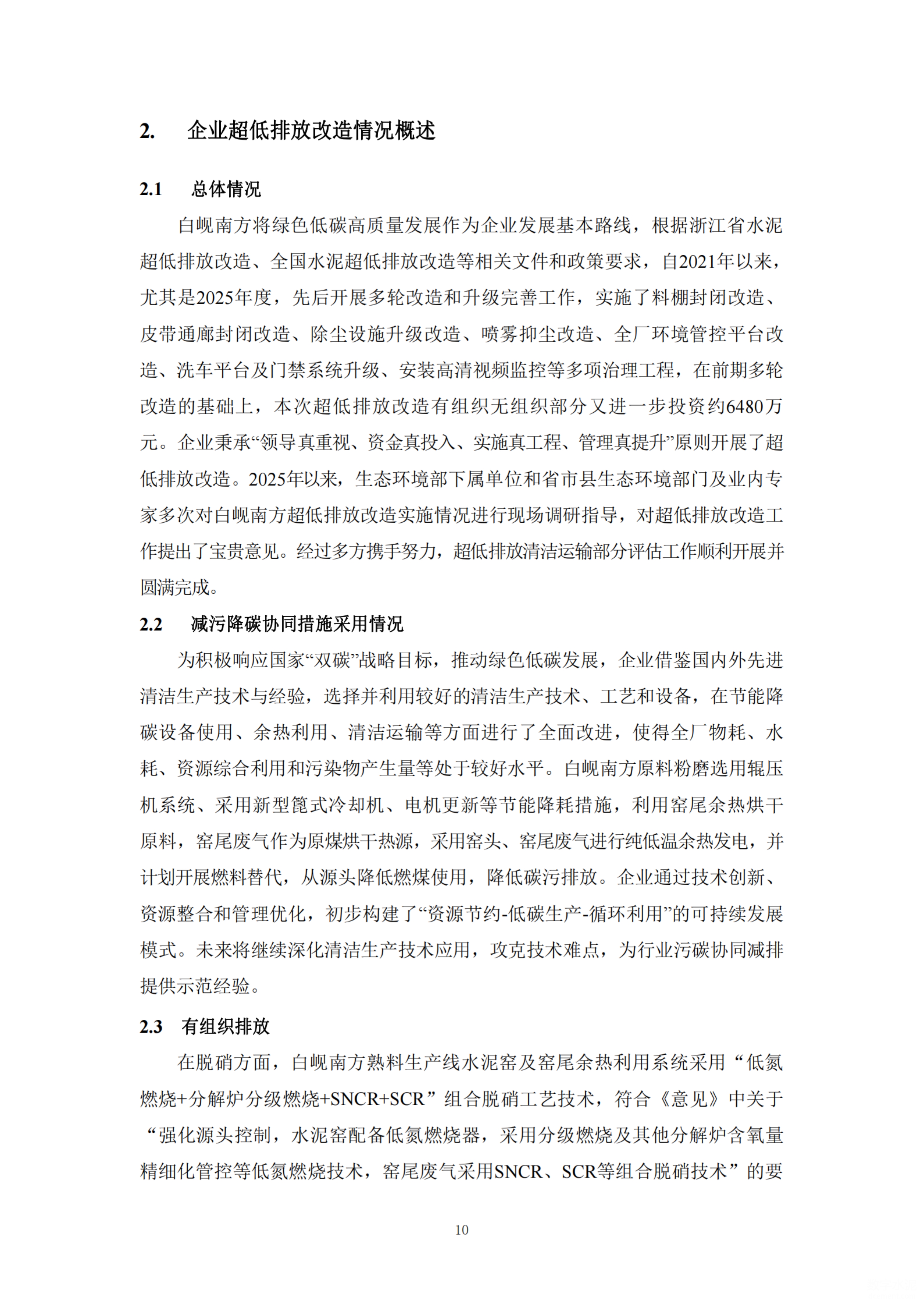 湖州白岘南方水泥有限公司有组织、无组织部分超低排放改造评估监测进展情况公示内容