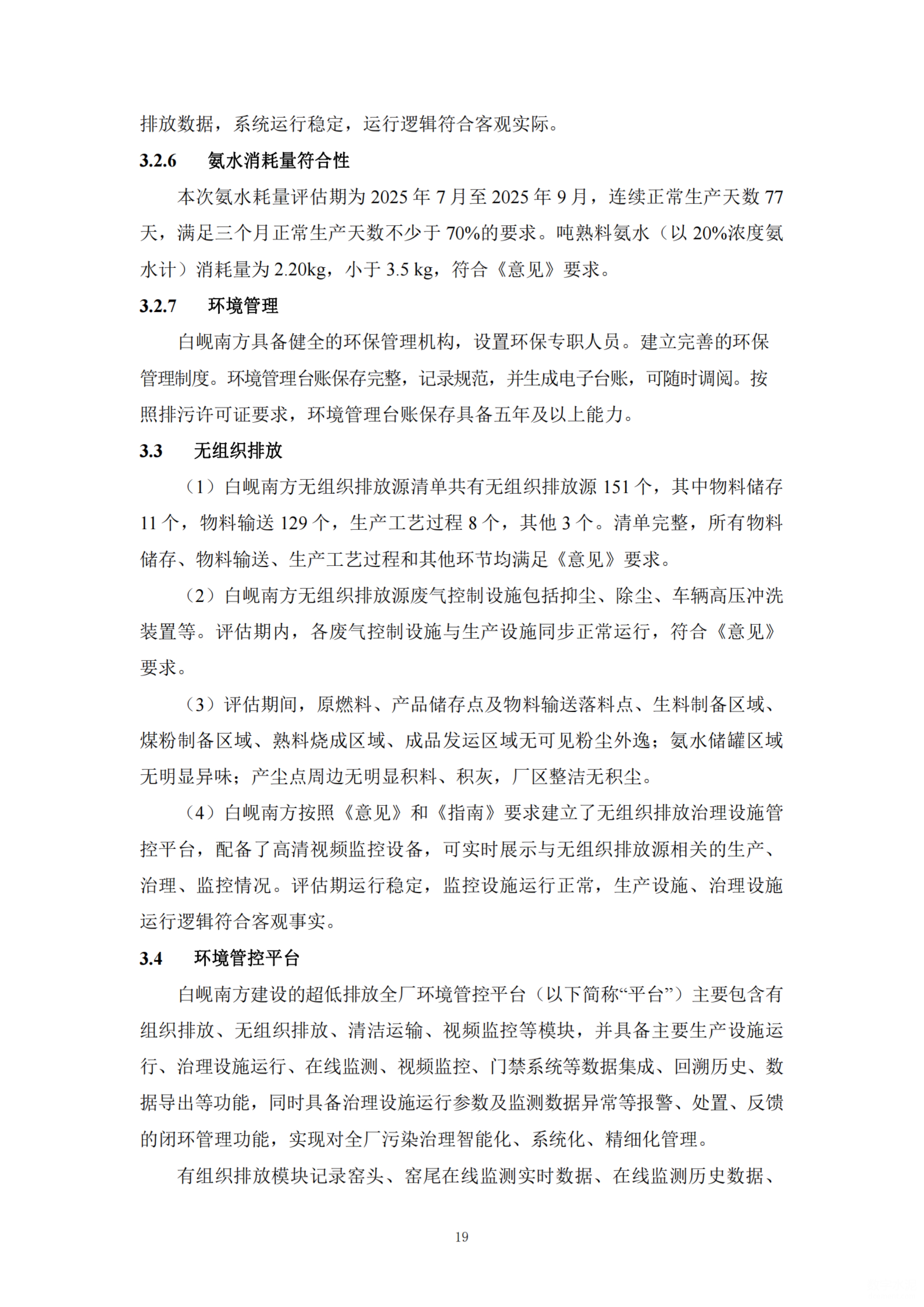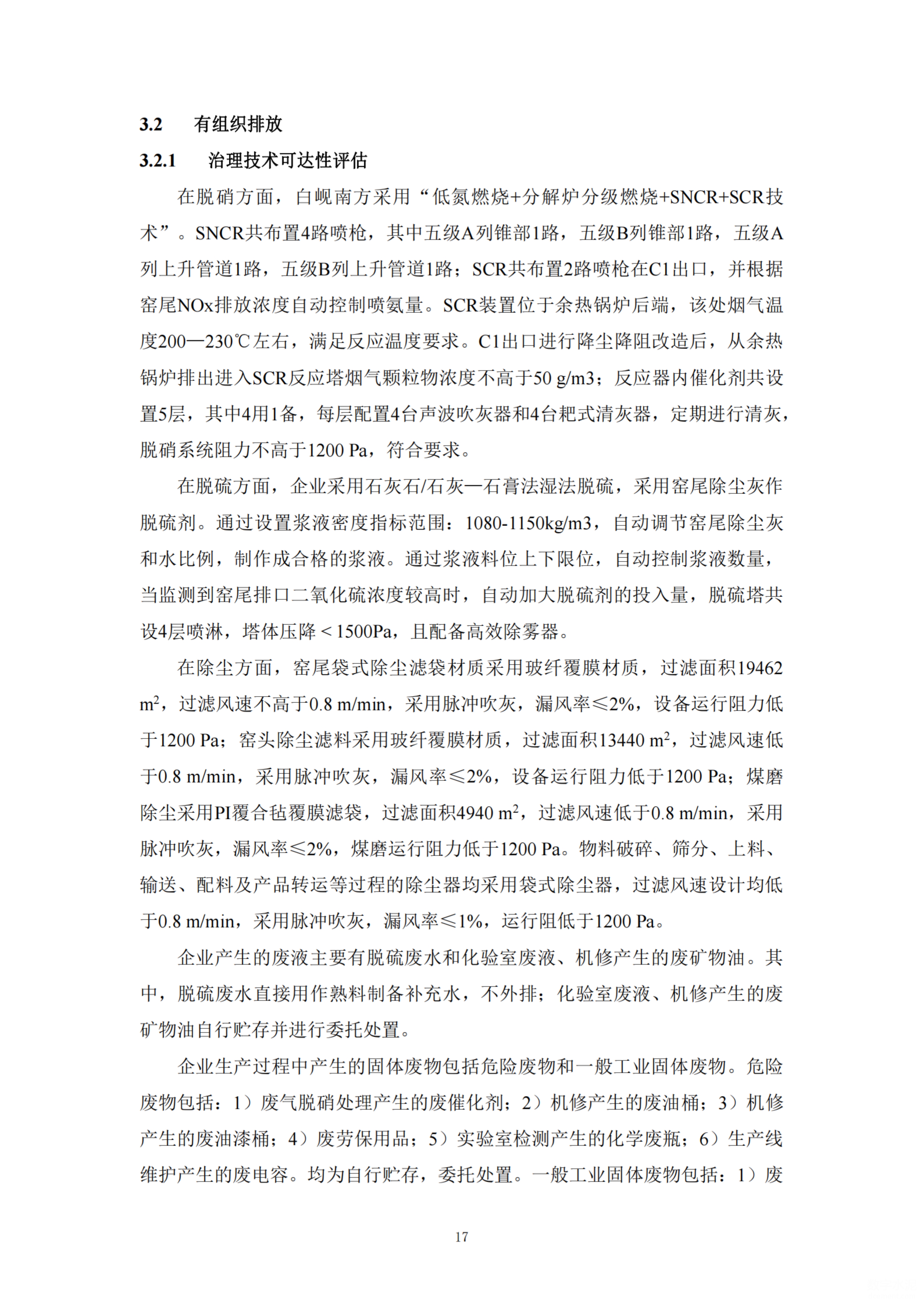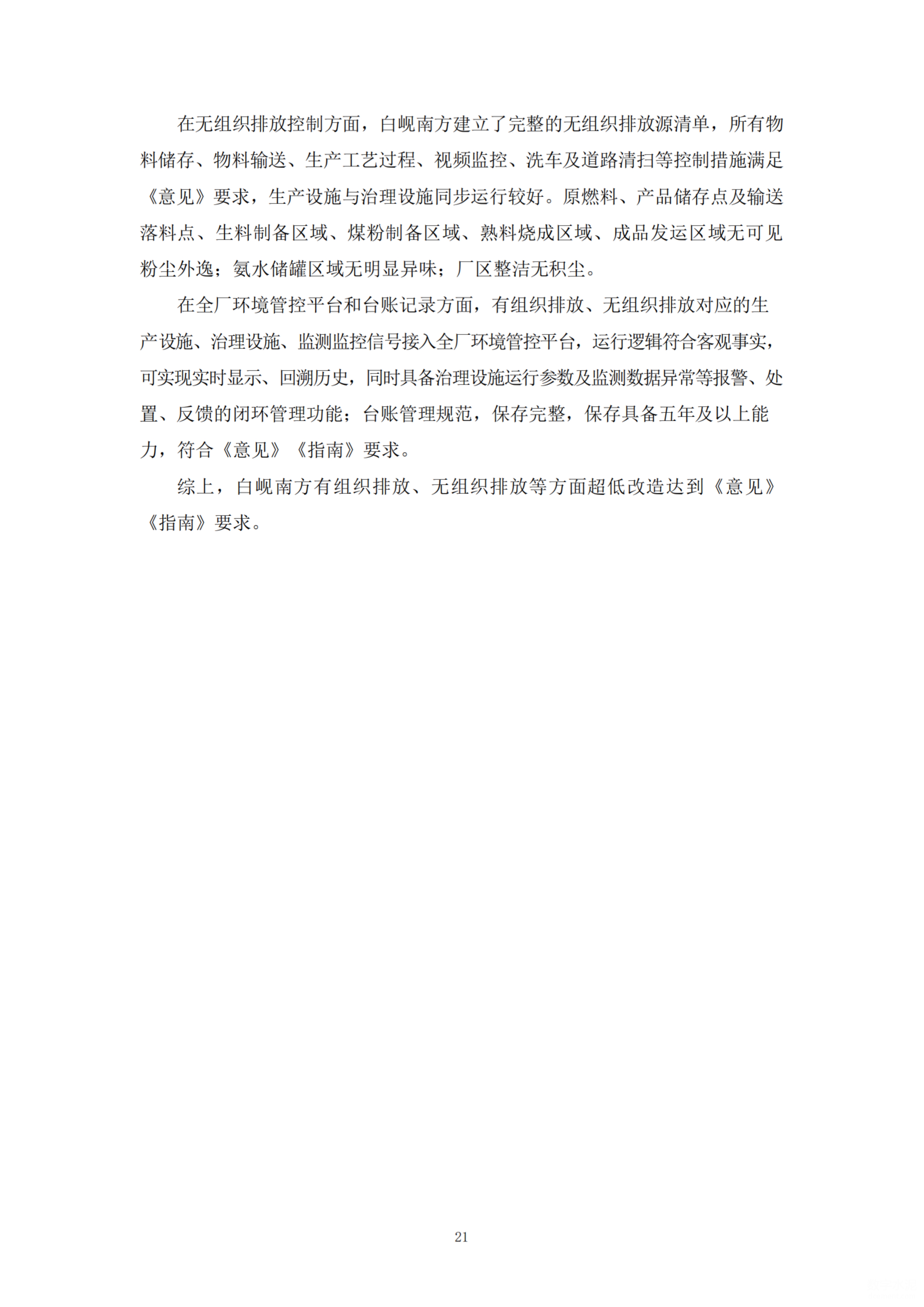 湖州白岘南方水泥有限公司有组织、无组织部分超低排放改造评估监测进展情况公示内容