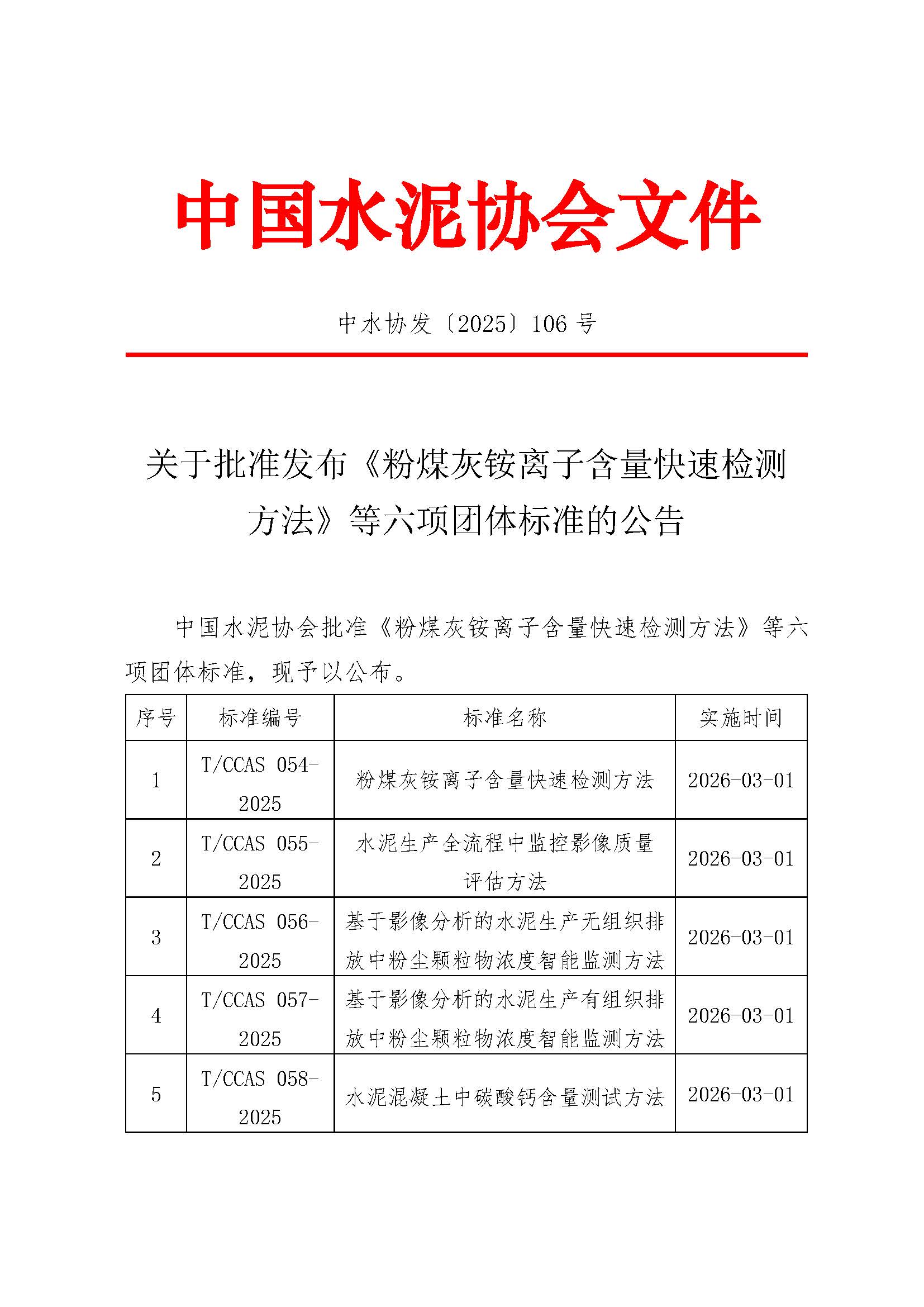 关于批准发布《粉煤灰铵离子含量快速检测方法》等六项团体标准的公告