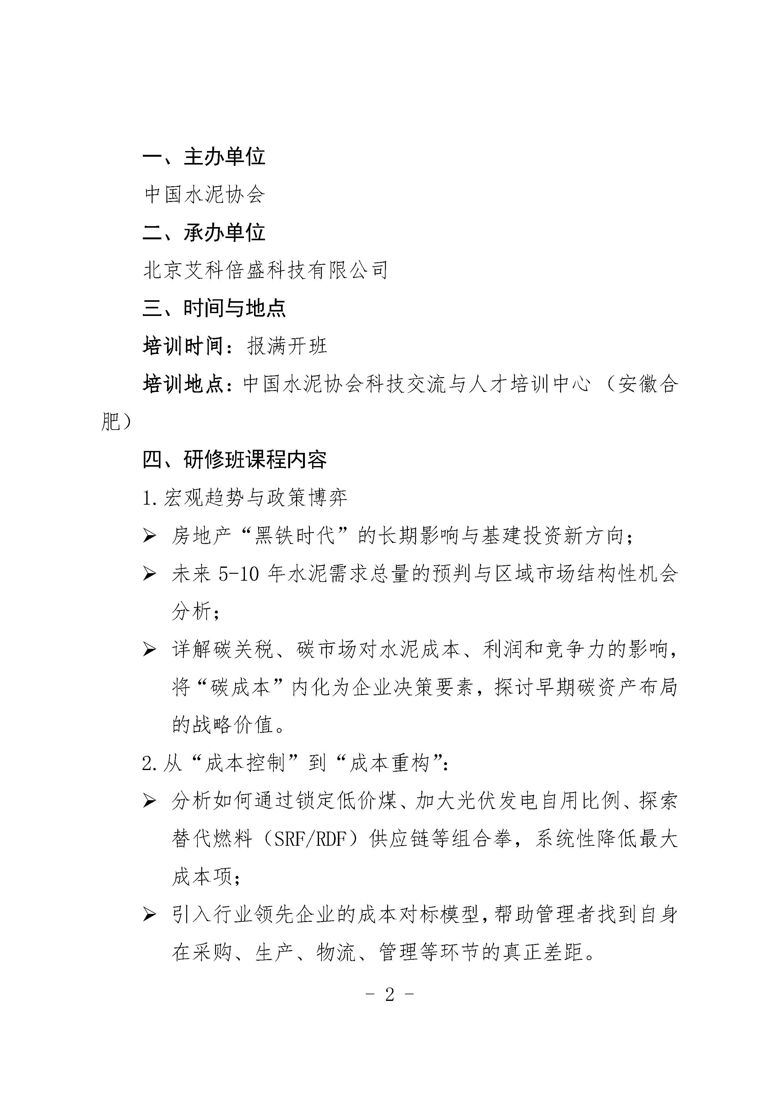 关于举办“水泥企业的成本重构与战略增长新路径”高级研修班的通知
